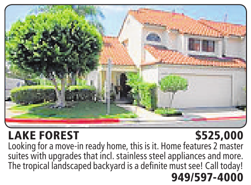 LAKE FOREST $525,000 Looking for amove-inready home,this is it.Homefeatures2master suites with upgrades that incl.stainless steelappliancesand more. Thetropical landscapedbackyard is adefinite mustsee!Calltoday!