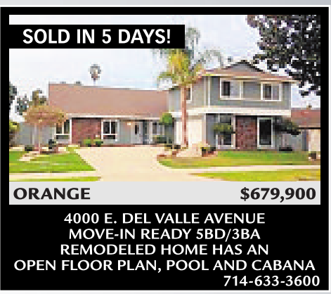 4000 E. DEL VALLE AVENUE MOVE-IN READY 5BD/3BA REMODELED HOME HAS AN OPEN FLOOR PLAN, POOL AND CABANA 714-633-3600