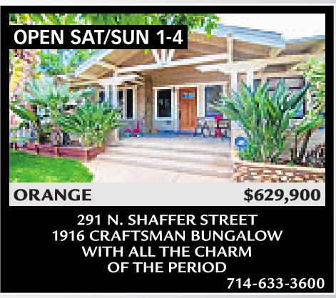 291 N. SHAFFER STREET 1916 CRAFTSMAN BUNGALOW WITH ALL THE CHARM OF THE PERIOD 714-633-3600