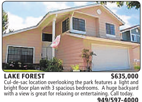 LAKE FOREST $635,000 Cul-de-sac location overlooking theparkfeatures a light and brightfloorplanwith3spacious bedrooms. Ahuge backyard with aviewisgreat forrelaxingorentertaining. Call today.