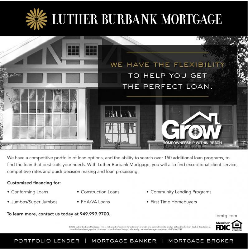 ©2015 Luther Burbank Mortgage. This is not an advertisement for extension of credit or acommitment to lend as defined by Section 1026.2 Regulation Z. Luther Burbank Mortgage is adivision of Luther Burbank Savings, afederally chartered savings association. NMLS# 449241