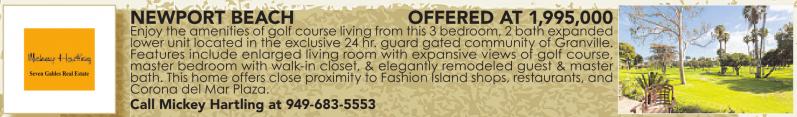 bath. This home offers close proximity to Fashion Island shops, restaurants, and Corona del Mar Plaza. Call Mickey Hartling at 949-683-5553