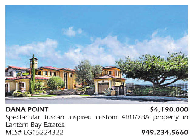 DANA POINT $4,190,000 Spectacular Tuscan inspired custom 4BD/7BA property in Lantern Bay Estates. MLS# LG15224322 949.234.5660