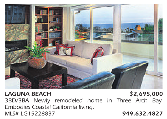 LAGUNA BEACH $2,695,000 3BD/3BA Newly remodeled home in Three Arch Bay. Embodies Coastal California living. MLS# LG15228837 949.632.4827