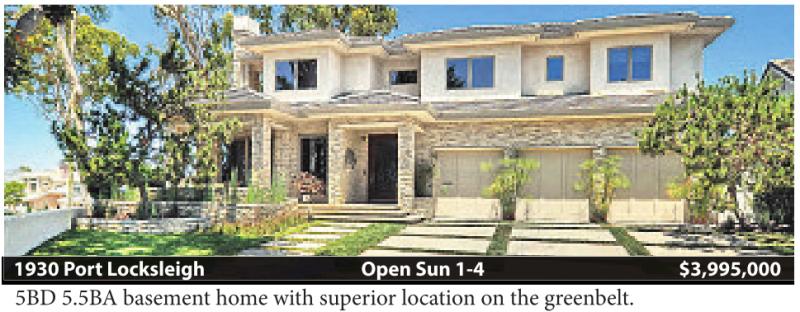 1930 Port Locksleigh Open Sun 1-4 $3,995,000 5BD 5.5BA basement home with superior location on the greenbelt.