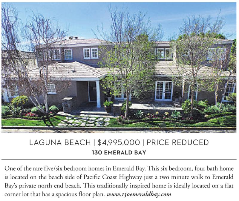 LAGUNA BEACH | $4,995,000 | PRICE REDUCED 130 EMERALD BAY One of the rare five/six bedroom homes in Emerald Bay. This six bedroom, four bath home is located on the beach side of Pacific Coast Highway just a two minute walk to Emerald Bay's private north end beach. This traditionally inspired home is ideally located on a flat corner lot that has a spacious floor plan. www.130emeraldbay.com