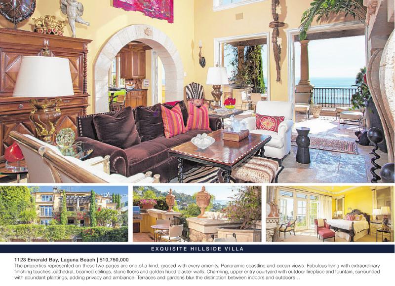 E X Q U I S I T E H I L L S I D E V I L L A 1123 Emerald Bay, Laguna Beach | $10,750,000 The properties represented on these two pages are one of a kind, graced with every amenity. Panoramic coastline and ocean views. Fabulous living with extraordinary finishing touches..cathedral, beamed ceilings, stone floors and golden hued plaster walls. Charming, upper entry courtyard with outdoor fireplace and fountain, surrounded with abundant plantings, adding privacy and ambiance. Terraces and gardens blur the distinction between indoors and outdoors… See also