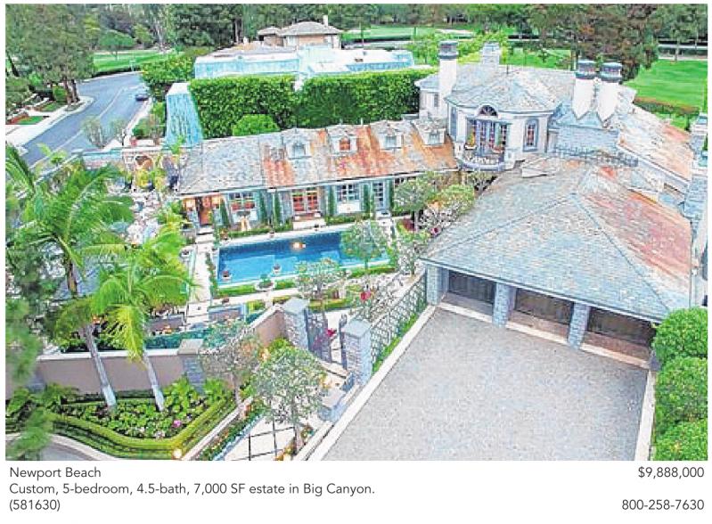 Newport Beach $9,888,000 Custom, 5-bedroom, 4.5-bath, 7,000 SF estate in Big Canyon. (581630) 800-258-7630