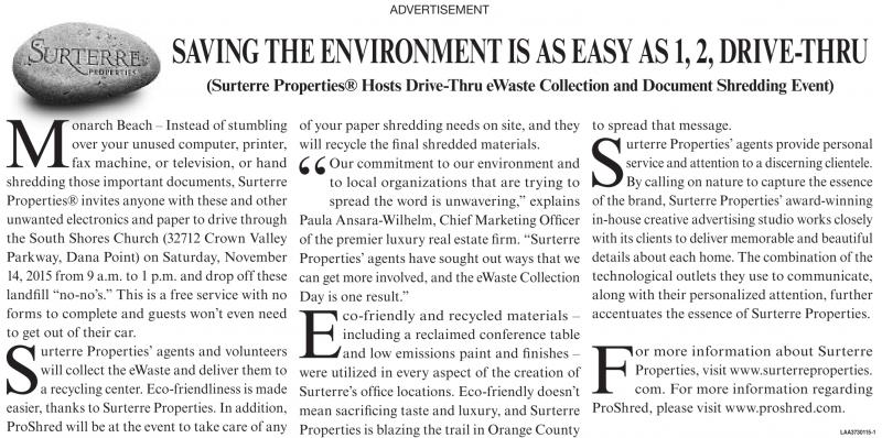 (Surterre Properties® Hosts Drive-Thru eWaste Collection and Document Shredding Event)