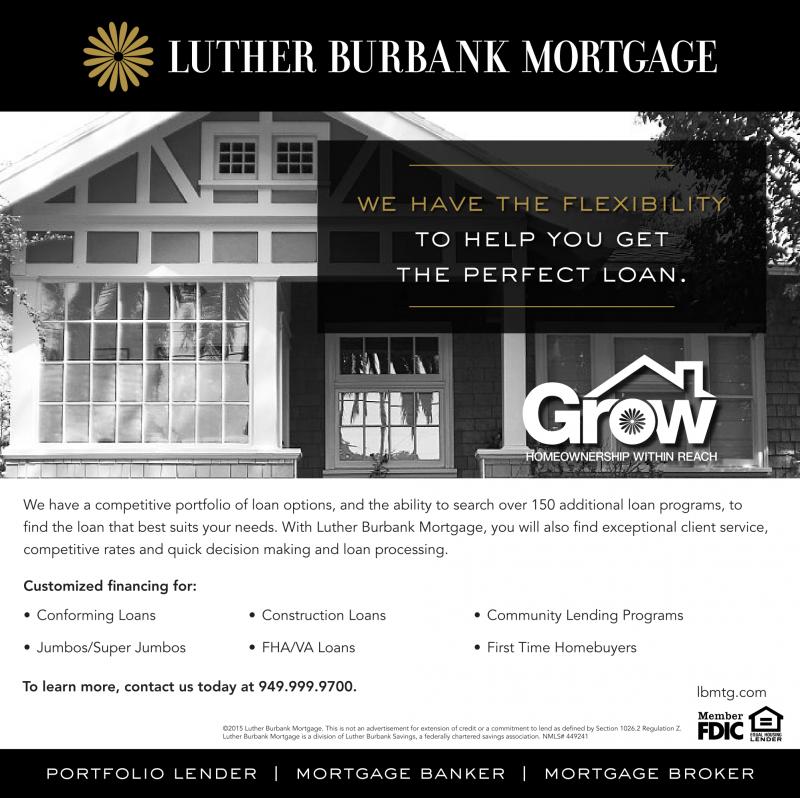 ©2015 Luther Burbank Mortgage. This is not an advertisement for extension of credit or acommitment to lend as defined by Section 1026.2 Regulation Z. Luther Burbank Mortgage is adivision of Luther Burbank Savings, afederally chartered savings association. NMLS# 449241