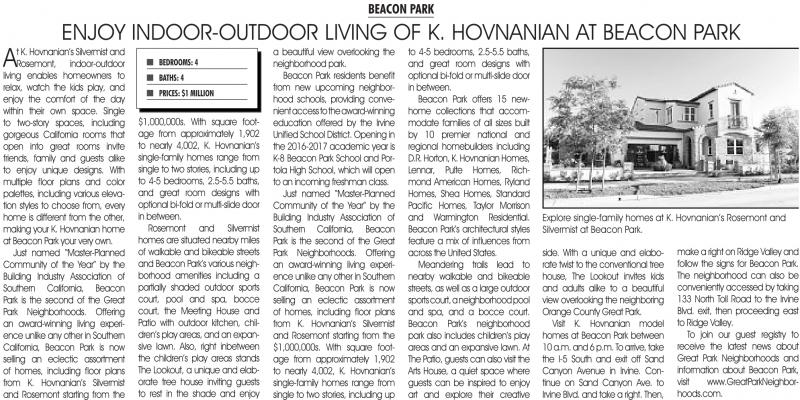 to join our guest registry to receive the latest news about Great Park Neighborhoods and information about Beacon Park, visit www.GreatParkNeighborhoods.com.