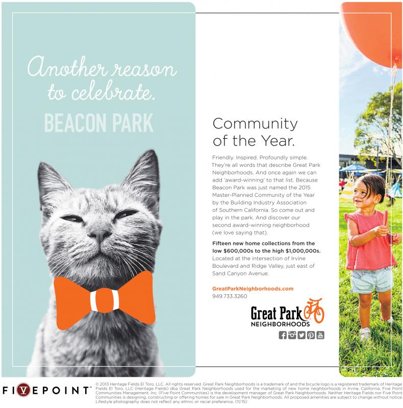 They’re all words that describe Great Park Neighborhoods. And once again we can add ‘award-winning’ to that list. Because Beacon Park was just named the 2015 Master-Planned Community of the Year by the Building Industry Association of Southern California. So come out and play in the park. And discover our second award-winning neighborhood (we love saying that).
