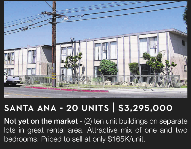 Not yet on the market - (2) ten unit buildings on separate lots in great rental area. Attractive mix of one and two bedrooms. Priced to sell at only $165K/unit.