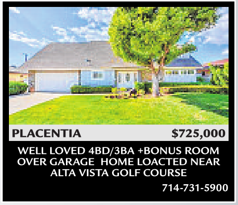 WELL LOVED 4BD/3BA +BONUS ROOM OVER GARAGE HOME LOACTED NEAR ALTA VISTA GOLF COURSE 714-731-5900