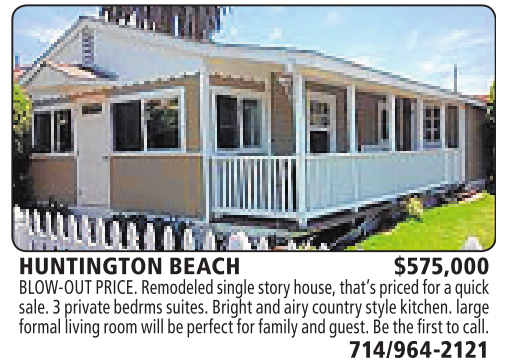 HUNTINGTON BEACH $575,000 BLOW-OUT PRICE.Remodeledsinglestory house, that’s pricedfor aquick sale.3privatebedrms suites. Bright and airycountry style kitchen. large formal living room will be perfectfor family andguest.Bethe first to call.