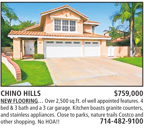 CHINO HILLS $759,000 NEWFLOORING… Over 2,500sq.ft.ofwellappointed features. 4