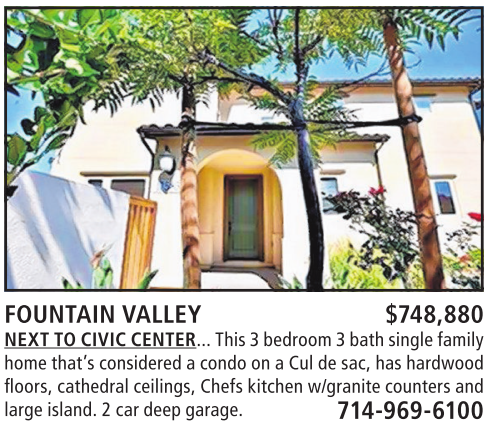 home that’s consideredacondo on aCul de sac, has hardwood floors,cathedral ceilings,Chefs kitchen w/granitecountersand large island.2car deep garage. 714-969-6100