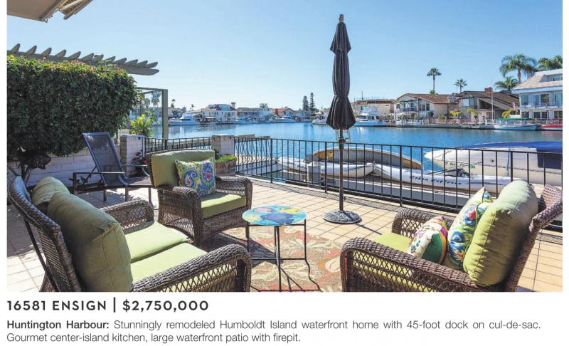 Huntington Harbour: Stunningly remodeled Humboldt Island waterfront home with 45-foot dock on cul-de-sac. Gourmet center-island kitchen, large waterfront patio with firepit.