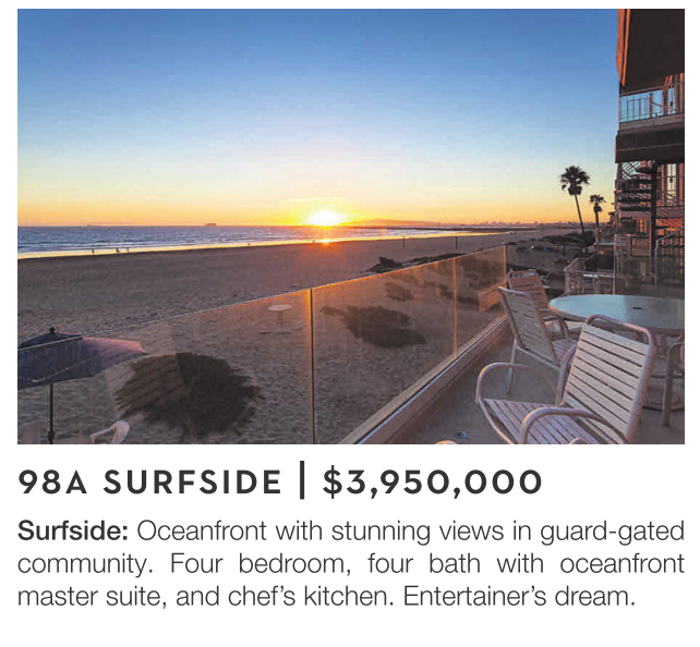 Surfside: Oceanfront with stunning views in guard-gated community. Four bedroom, four bath with oceanfront master suite, and chef’s kitchen. Entertainer’s dream.