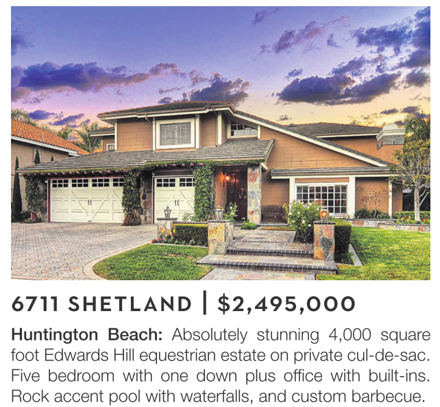 Huntington Beach: Absolutely stunning 4,000 square foot Edwards Hill equestrian estate on private cul-de-sac. Five bedroom with one down plus office with built-ins. Rock accent pool with waterfalls, and custom barbecue.