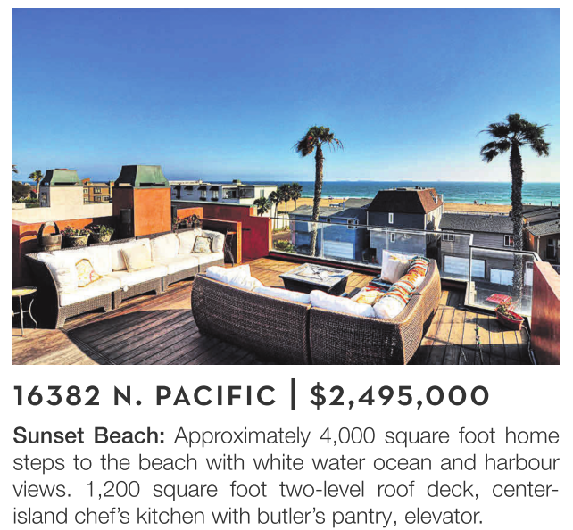 Sunset Beach: Approximately 4,000 square foot home steps to the beach with white water ocean and harbour views. 1,200 square foot two-level roof deck, centerisland chef’s kitchen with butler’s pantry, elevator.