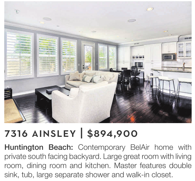 Huntington Beach: Contemporary BelAir home with private south facing backyard. Large great room with living room, dining room and kitchen. Master features double sink, tub, large separate shower and walk-in closet.