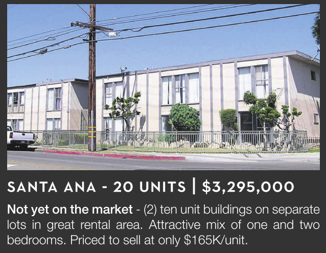 Not yet on the market - (2) ten unit buildings on separate lots in great rental area. Attractive mix of one and two bedrooms. Priced to sell at only $165K/unit.