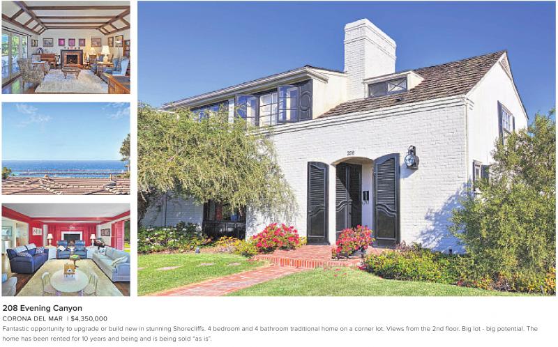 CORONA DEL MAR | $4,350,000 Fantastic opportunity to upgrade or build new in stunning Shorecliffs. 4 bedroom and 4 bathroom traditional home on a corner lot. Views from the 2nd floor. Big lot - big potential. The home has been rented for 10 years and being and is being sold “as is”.