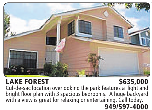 LAKE FOREST $635,000 Cul-de-saclocation overlooking theparkfeaturesa lightand brightfloorplanwith3spacious bedrooms. Ahugebackyard with aviewisgreat forrelaxingorentertaining. Call today.