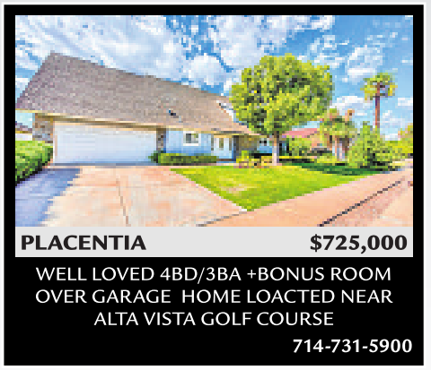 WELL LOVED 4BD/3BA +BONUS ROOM OVER GARAGE HOME LOACTED NEAR ALTA VISTA GOLF COURSE 714-731-5900