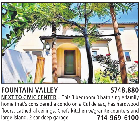 home that’s consideredacondo on aCul de sac, has hardwood floors,cathedral ceilings,Chefs kitchen w/granitecountersand large island.2car deep garage. 714-969-6100