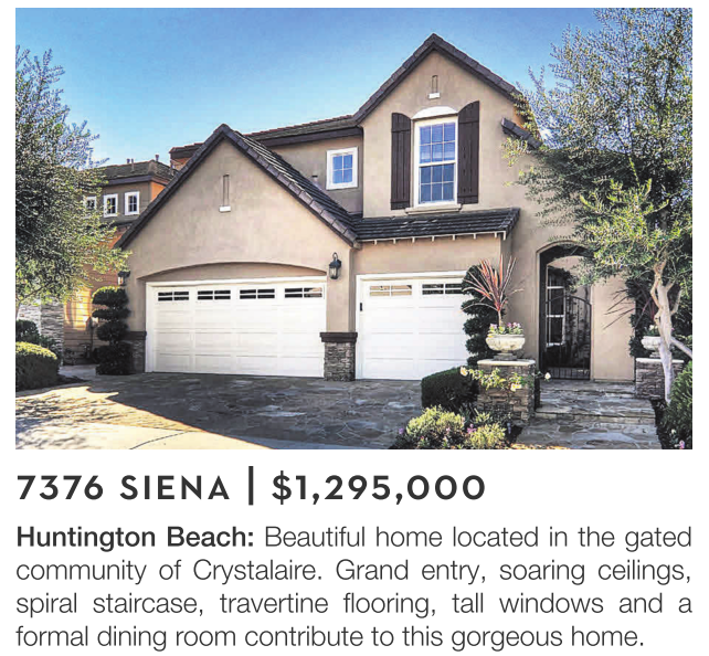 Huntington Beach: Beautiful home located in the gated community of Crystalaire. Grand entry, soaring ceilings, spiral staircase, travertine flooring, tall windows and a formal dining room contribute to this gorgeous home.