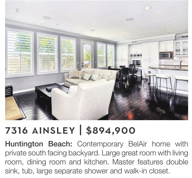 Huntington Beach: Contemporary BelAir home with private south facing backyard. Large great room with living room, dining room and kitchen. Master features double sink, tub, large separate shower and walk-in closet.