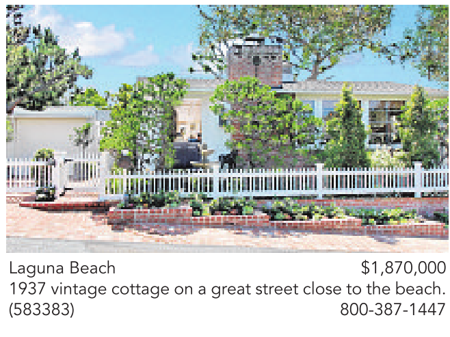 Laguna Beach $1,870,000 1937 vintage cottage on a great street close to the beach. (583383) 800-387-1447