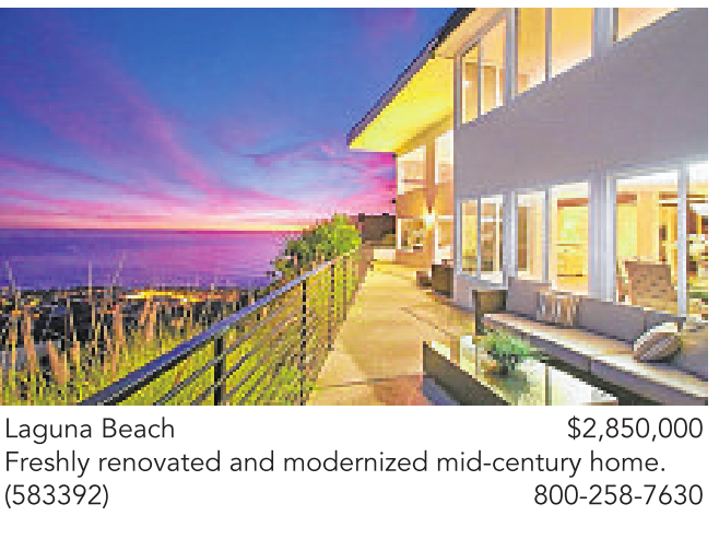 Laguna Beach $2,850,000 Freshly renovated and modernized mid-century home. (583392) 800-258-7630