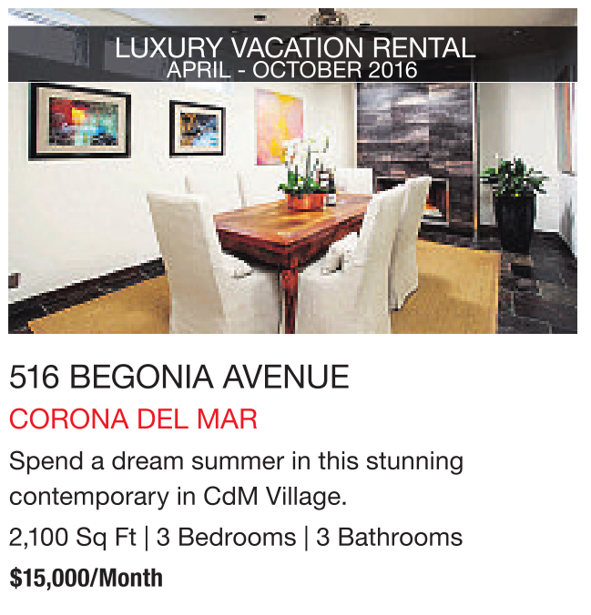 Spend a dream summer in this stunning contemporary in CdM Village. 2,100 Sq Ft | 3 Bedrooms | 3 Bathrooms $15,000/Month