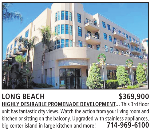 LONG BEACH $369,900 HIGHLY DESIRABLEPROMENADE DEVELOPMENT... This 3rdfloor unit hasfantastic cityviews.Watchthe action from your living room and kitchen or sittingonthe balcony. Upgraded with stainlessappliances, big center island in large kitchen and more! 714-969-6100