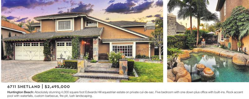 Huntington Beach: Absolutely stunning 4,000 square foot Edwards Hill equestrian estate on private cul-de-sac. Five bedroom with one down plus office with built-ins. Rock accent pool with waterfalls, custom barbecue, fire pit, lush landscaping.