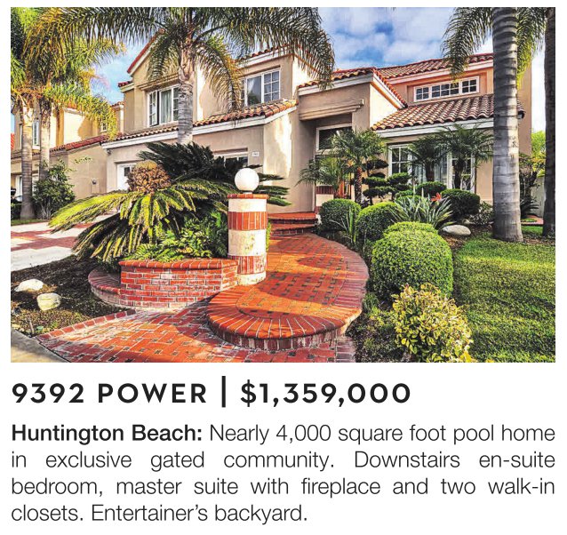 Huntington Beach: Nearly 4,000 square foot pool home in exclusive gated community. Downstairs en-suite bedroom, master suite with fireplace and two walk-in closets. Entertainer’s backyard.