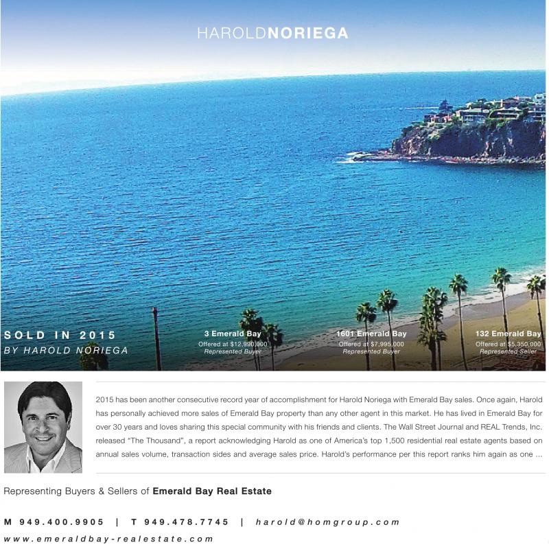 2015 has been another consecutive record year of accomplishment for Harold Noriega with Emerald Bay sales. Once again, Harold has personally achieved more sales of Emerald Bay property than any other agent in this market. He has lived in Emerald Bay for over 30 years and loves sharing this special community with his friends and clients. The Wall Street Journal and REAL Trends, Inc. released “The Thousand”, a report acknowledging Harold as one of America’s top 1,500 residential real estate agents based on annual sales volume, transaction sides and average sales price. Harold’s performance per this report ranks him again as one ...