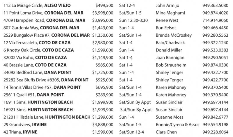 40 BrassieLane, COTODECAZA $585,000 Sat 1-4 Bob Strausheim 949.874.0300