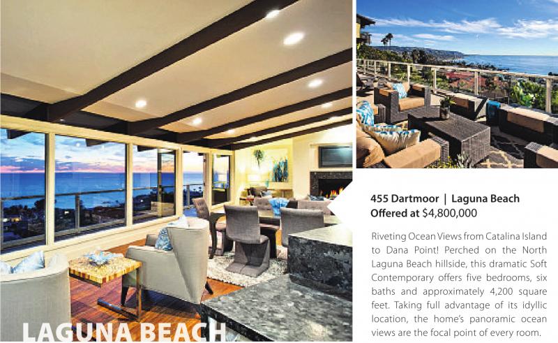 Riveting Ocean Views from Catalina Island to Dana Point! Perched on the North Laguna Beach hillside, this dramatic Soft Contemporary offers five bedrooms, six baths and approximately 4,200 square feet. Taking full advantage of its idyllic location, the home’s panoramic ocean views are the focal point of every room.