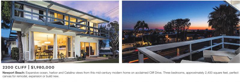 Newport Beach: Expansive ocean, harbor and Catalina views from this mid-century modern home on acclaimed Cliff Drive. Three bedrooms, approximately 2,400 square feet, perfect canvas for remodel, expansion or build new.