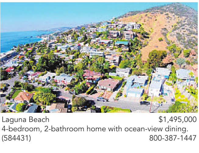Laguna Beach $1,495,000 4-bedroom, 2-bathroom home with ocean-view dining. (584431) 800-387-1447