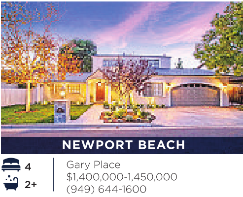 NEWPORT BEACH 4 2+ Gary Place $1,400,000-1,450,000 (949) 644-1600 See also
