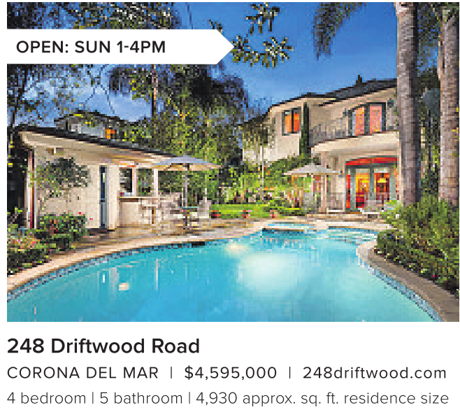 CORONA DEL MAR | $4,595,000 | 248driftwood.com 4 bedroom | 5 bathroom | 4,930 approx. sq. ft. residence size
