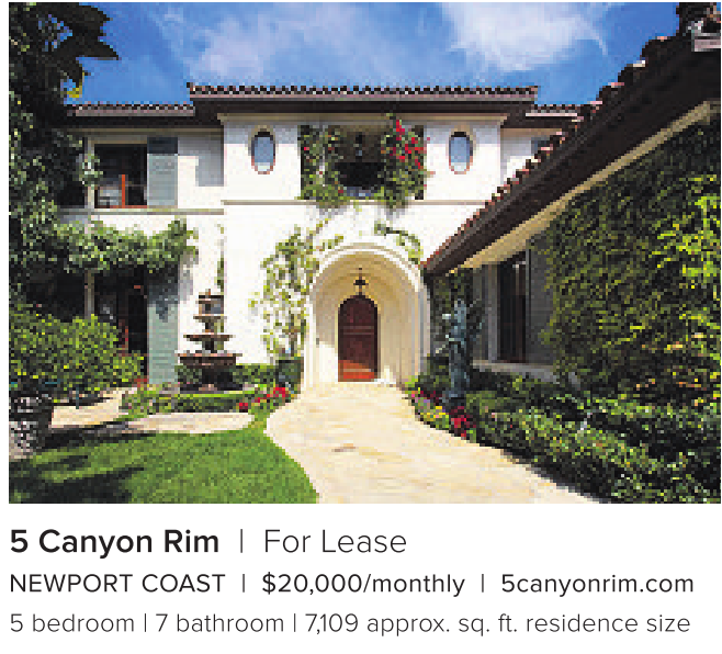 NEWPORT COAST | $20,000/monthly | 5canyonrim.com 5 bedroom | 7 bathroom | 7,109 approx. sq. ft. residence size