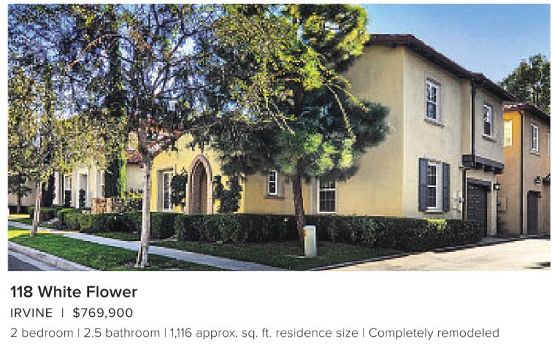 IRVINE | $769,900 2 bedroom | 2.5 bathroom | 1,116 approx. sq. ft. residence size | Completely remodeled