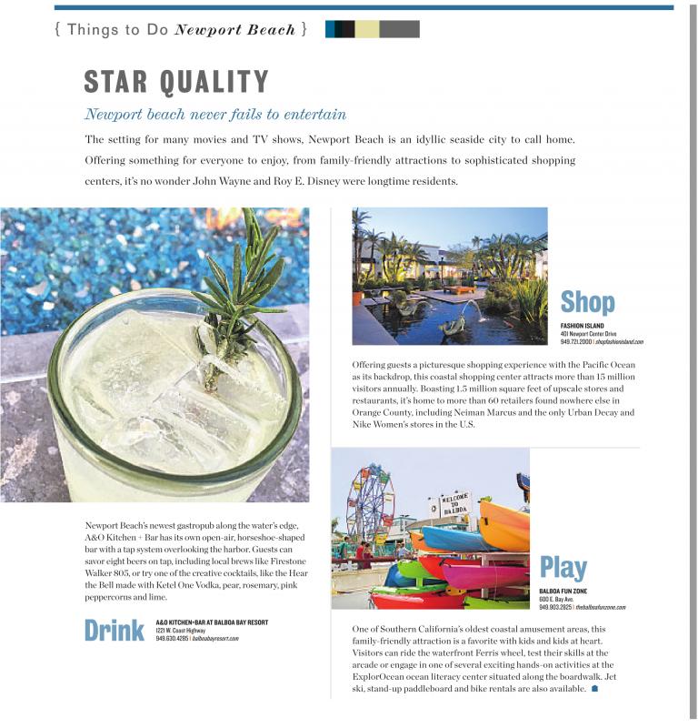 A&O KITCHEN+BARATBALBOABAY RESORT 1221 W. Coast Highway 949.630.4285 I balboabayresort.com