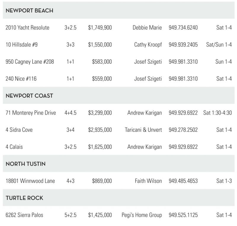10 Hillsdale #9 3+3 $1,550,000 Cathy Kroopf 949.939.2405 Sat/Sun 1-4